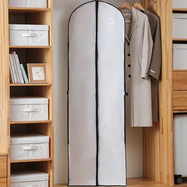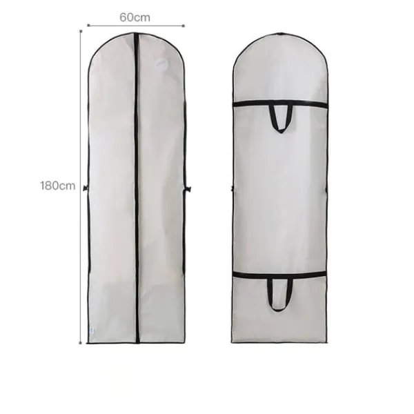 Omfattande skydd: Denna klädpåse ger ett tillförlitligt skydd mot damm, smuts, insekter och andra potentiella faror, vilket håller din brudklänning fläckfri och redo för din speciella dag eller framtida fester.