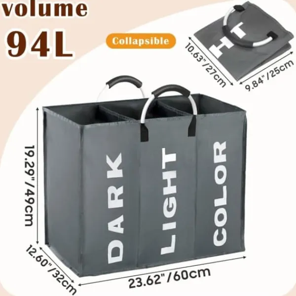 Praktisk 3-sektionsdesign – Håll ljusa, mörka och färgade kläder åtskilda i samma korg. Spara tid och gör tvättdagen mer effektiv.
