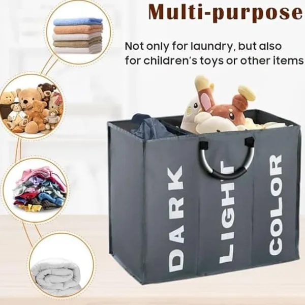 Tvättkorg med 3 Fack – Vattentät & Hopfällbar Tvättsorterare med Aluminiumhandtag