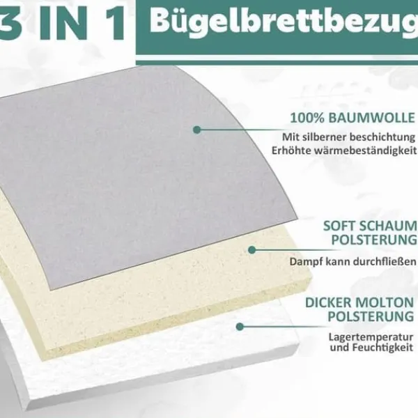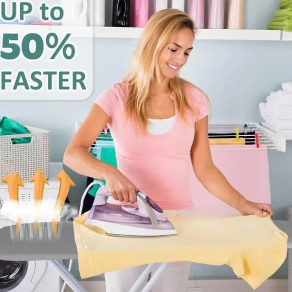 SNABB STRYKNING – Det 3-i-1 tygöverdraget säkerställer optimal reflektans av värme och ånga för att hjälpa till att spara tid och strykenergi. Det silverbelagda materialet med bättre värmereflektion säkerställer optimal reflektans av värme och ånga.