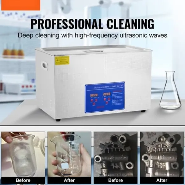 Denna rengöringsapparat är tillverkad av 304 rostfritt stål, har ett ljuddämpande lock och integrerade handtag på båda sidor, vilket gör den hållbar och lätt att rengöra.