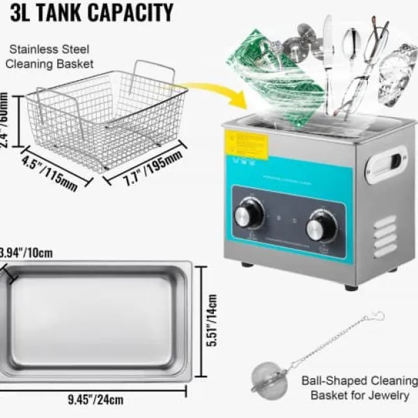 Denna ultraljudstvätt är utformad för effektiv och grundlig rengöring av smycken, glasögon, klockor och andra känsliga föremål. Med en robust konstruktion i rostfritt stål, justerbar timer- och temperaturkontroll samt en kraftfull ultraljudsfrekvens säkerställs djupgående rengöring samtidigt som dina värdesaker skyddas. Den användarvänliga designen gör den lämplig för både kommersiellt och privat bruk.