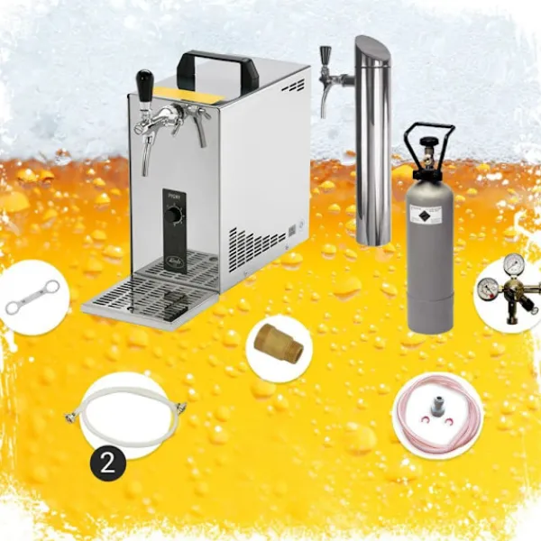 Komplett uppsättning Öltapp, öldispenser, ölmaskin, ölautomat, ölkylare, öltappingssystem – Lindr PYGMY 25 1-linje torrkylare, 35 liter/h, inklusive utmatningspelare, Green Line Framtidens öl hanteras med elegans och enkelhet med den här kompletta uppsättningen för ölhantering. Lindr PYGMY 25 1-line torrkylare är en modern och robust ölmaskin som kan ta upp till 35 liter öl per timme vid en perfekt temperatur på 10°C. Denna set innehåller en utmatningspelare, Green Line och en droppbricka i rostfritt stål. Här är huvudfunktionerna: •Färdig att använda på bara 2-4 minuter med en tappkapacitet på 35 L/h vid 10°C TD.•Kontrollområde på +2 till +10 grader för perfekt kyld öl varje gång.•Kylteknik är 45 % effektivare, vilket gör den miljövänlig och energieffektiv.•Grön linje – certifierad kylvätska R290, som uppfyller EU-förordningen 2021.•Lättvikts torrkylkran gjord av rostfritt stål med en efterkylningskompensatorkran.•Ny modell: Kraftfullare med en ny kompressor, 15 % effektivare och miljövänligare.•Torn av modell av dispenser/bensinpump, mattborstad, 1-sidig, för enkel hällning.•Rengöringsadapter 30 mm.•Ölslang 7 mm komplett, klar, 3,0 m.•CO2-flaska, 2,0 kg, med tryckreducerare 1-sidig CO2 för ölautomat 3bar och CO2-slang komplett, 1,5 m. Med sin användarvänliga konstruktion är denna ölmaskin perfekt för både hembryggare och proffs. Den är enkel att använda och kommer integrerad med allt som behövs för att börja servera öl direkt. Detta inkluderar utmatningspelare, Green Line och droppbricka i rostfritt stål för en ren och enkel hällning som håller drycken kyld och fräsch. Denna multifunktionella ölmaskin är perfekt för hemmabarer, bryggare, pubar och restauranger eller vilket annat tillfälle där öl serveras. Det är ett effektivt sätt att hålla drycken kyld, tilltalande och serveras vid rätt temperatur. Så varför inte lägga till en touch av elegans och praktiskt användande till din hemmabar eller nöjesutrymme med Lindr PYGMY 25 1-linje torrkylare? Med ett snabbt och enkelt installationsförfarande och en hög kvalitet på drycken, kommer gästerna garanterat att imponeras. Denna ölmaskin är en utmärkt investering för alla dem som vill höja kvaliteten på deras öl utan krångel. Med en liten fotavtryck och enkel hantering är det lätt att förstå varför Lindr PYGMY 25 1-line torrkylare är ett populärt val bland hembryggare och professionella kockar över hela världen. I en tid när kylda drycker är en nödvändighet för varje social händelse, kommer denna ölmaskin att visa sig vara en tillförlitlig, effektiv och miljövänlig utrustning. Så lägg till en touch av stil och enkelhet till din nästa sociala samling med Lindr PYGMY 25 1-line torrkylare.