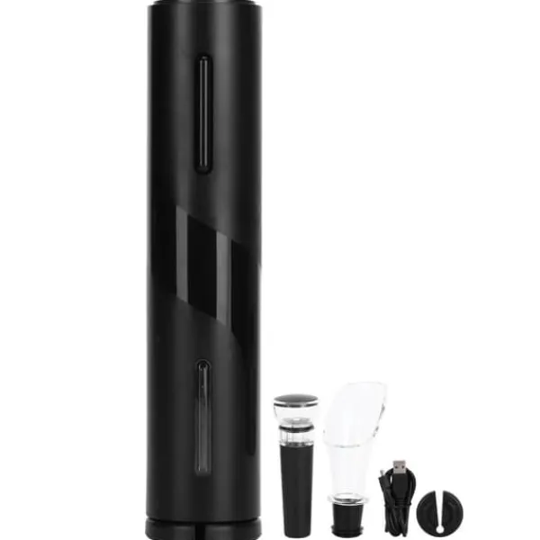 Välkommen till vår butik! Denna 4-delade kollektion för vinälskare erbjuder en komplett lösning för att öppna, hälla och konservera ditt vin. Setet innehåller en elektrisk vinöppnare, folieskärare, vinkonserverare och hällrör. Den elektriska korkskruven öppnar enkelt olika vinflaskor, lämpliga för syntetiska och träkorkar med en diameter på 20-24 mm, och passar flaskor med rak eller konvex öppning med en ytterdiameter upp till 35 mm. Hällröret har en ny design som förhindrar dropp och skyddar vinetiketter under hällning. Vakuumproppen för vin bevarar färskheten i upp till 7 dagar med hjälp av livsmedelsklassad silikon, vilket bibehåller vinets ursprungliga smak. Enkel knapptryckning tar bort korkar på några sekunder utan att skadas, och den medföljande folieskäraren tar enkelt bort förseglingarna med en smidig rotation. Perfekt som present till födelsedagar, bröllop, årsdagar, examen, pensionering eller inflyttningsfester. Setet är tillverkat av ABS-plast i svart, med detaljerade mått: vinöppnare ca 48×215 mm, hällrör ca 53×95 mm, propp ca. 31×90 mm, folieskärare ca 18×50 mm. Tekniska specifikationer inkluderar märkspänning 3,6 V, effekt 25 W, inspänning 5 V, ineffekt 10 W, ljudnivå under 75 dB och ett inbyggt Ni-MH 500 mAh batteri. Paketet innehåller 1 elektrisk vinöppnare, 1 folieskärare, 1 vinpropp, 1 vinupphällningskanna, 1 bruksanvisning och 1 USB-kabel. Nöjdhet: Våra kunder är vår högsta prioritet. Om du upptäcker några produktproblem efter att du mottagit varorna, såsom skador eller felaktig mängd varor, vänligen kontakta säljaren omedelbart. Vi gör vårt bästa för att ge dig tillfredsställande kundservice.