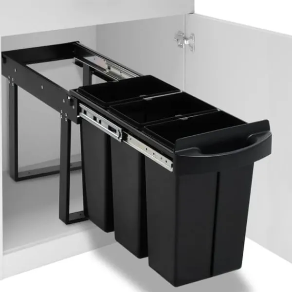 Sophinken är en ideal lösning för alla kök. Den passar enkelt i ett köksskåp för att smälta in i ditt kök. Den har tre separata behållare, som gör det enkelt att sopsortera. Behållarna är helt avtagbara för enkel rengöring. Dessutom skyddar dess mjuka stängning dina möbler och är säkrare för barn. Locket och höljet är tillverkat i kvalitativ ABS och plast, som är korrosionsfritt för hållbarhet.