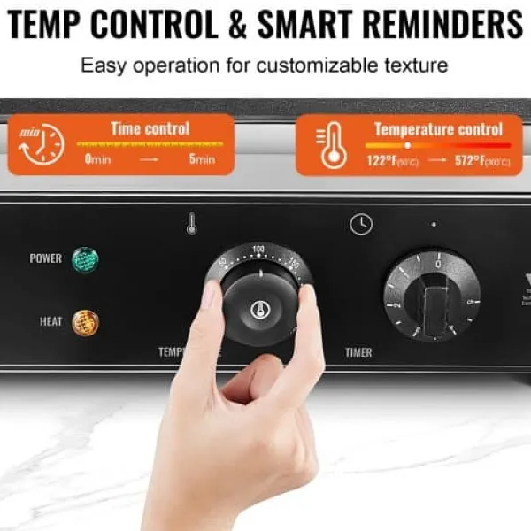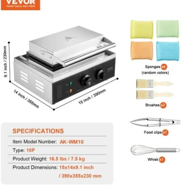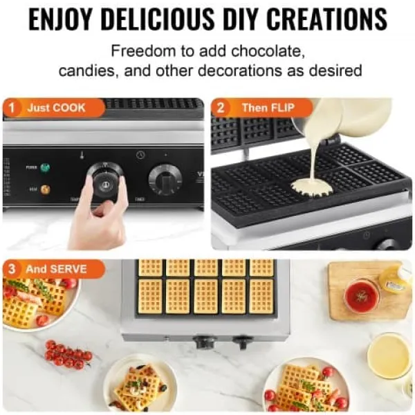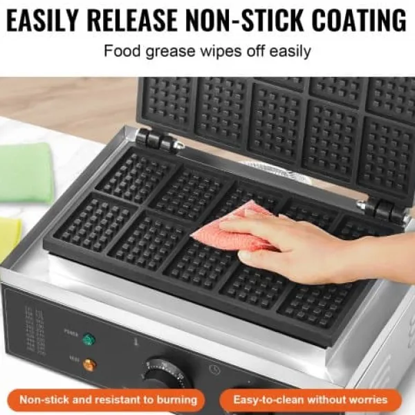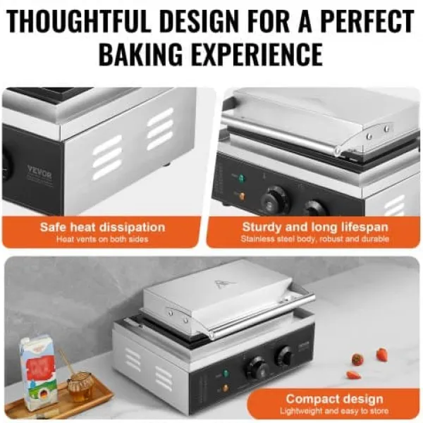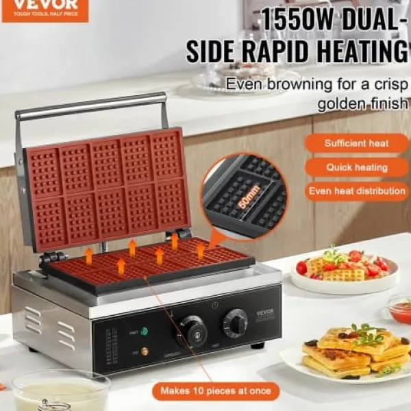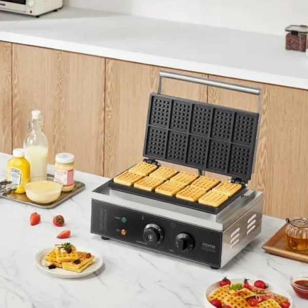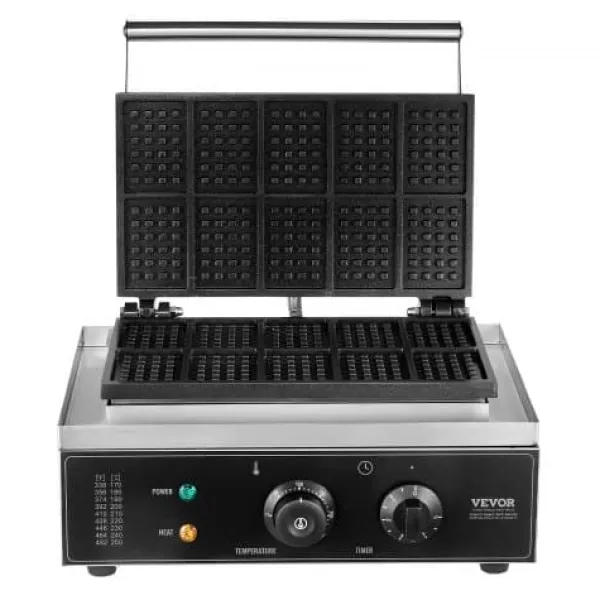 Denna kommersiella våffeljärn är utformad för snabb och enkel tillagning av läckra rektangulära våfflor, vilket gör den idealisk för restauranger, bagerier, snabbmatsställen eller familjesammankomster. Med precisa temperatur- och tidsinställningar, non-stick-plattor och lättskötta funktioner garanterar den jämna resultat och bekväm användning. Den robusta konstruktionen i rostfritt stål och genomtänkta design ger pålitlig prestanda för både professionellt och hemmabruk.