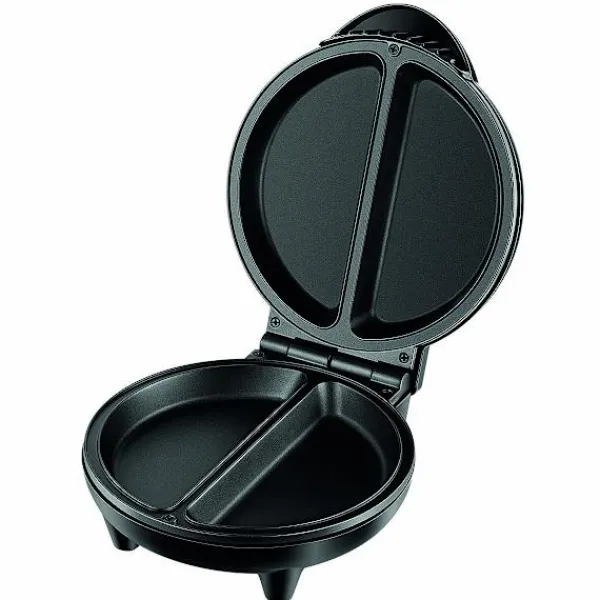 En omelett smakar fantastiskt gott och är en av de godaste och enklaste äggrätterna. Du har många möjligheter att lägga till läckra fyllningar av grönsaker, kött, fisk och ost och göra exakt din favoritsammansättning. Den smarta designen ger dig två omeletter på samma gång, och de är klara på ca 5 minuter. De sköter sig själva medan de tillagas, så att du kan ägna tiden åt annat. Den är utrustad med 750 watt och med termostatstyrning säkerställs en jämn värmefördelning under tillagningen. Indikatorlampan visar när maskinen har nått rätt temperatur och är klar att användas. Rengöringen är enkel, eftersom maskinen har non-stick-plattor och är utformad för att