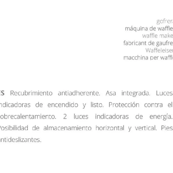 - mångsidig matlagning: kapabel att göra flera våfflor på en gång, är den idealisk för familjefrukostar eller för att underhålla gäster.