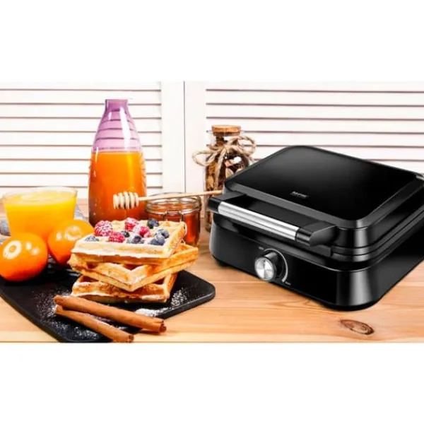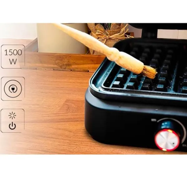 MPM MGO-40 dubbla våffeljärnet lagar krispiga och goda våfflor på några minuter, som du kan dekorera som du vill.Våfflor är en rätt som uppskattas särskilt av barn. De är väldigt enkla att tillaga och kan tillagas på olika sätt, söta eller salta. Våffeljärnet MGO-40 kommer att få ett leende på dina barns läppar varje dag. Du kan tillaga två våfflor i m