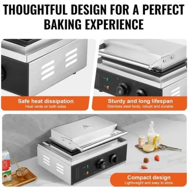 Detta våffeljärn är perfekt för hemmabruk, fester och professionell användning. Med möjlighet att skapa olika smakkombinationer och dekorera med godis eller choklad, är det ett mångsidigt verktyg för att skapa läckra våfflor.