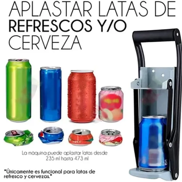 Denna metallburkkross är ett mångsidigt och praktiskt verktyg för ditt hem. Den är designad för att krossa burkar från 235 ml till 473 ml, vilket gör den lämplig för läskburkar eller ölburkar. Dessutom fungerar den som en bekväm flasköppnare, vilket ökar dess funktionalitet.