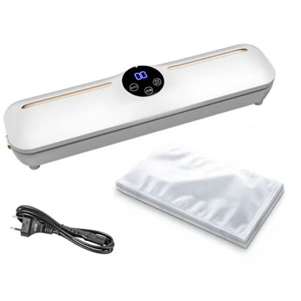 Vår vakuumförpackare är ett oumbärligt verktyg för alla matlagningsälskare, för att lagra och säkerställa långvarig färskhet av livsmedelsprodukter. Den gör det möjligt att snabbt och enkelt vakuumförpacka din mat, och bevara dess smak, arom och näringsvärde under längre tid.