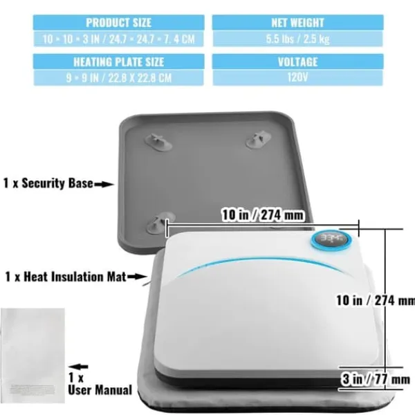 Värmeplatta Storlek: 9 × 9 tum / 22,8 x 22,8 cm