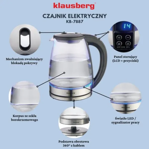 En vattenkokare som inte bara kokar vatten utan även anpassar sig efter dina behov. Denna moderna vattenkokare i glas med en integrerad kontrollpanel och temperaturval gör att du kan förbereda det perfekta vattnet för alla typer av te, kaffe eller flingor. Den eleganta, upplysta designen och den intuitiva användningen gör den dagliga användningen exceptionellt bekväm.