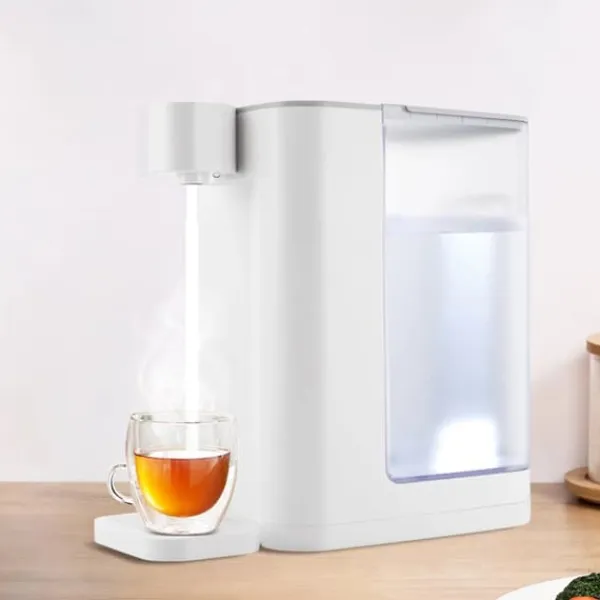 Vit omedelbar varmvattendispenserDenna kompakta vita dispenser ger varmt vatten på sekunder för te, kaffe eller varm mjölk – perfekt för hem, kontor och skola. Snabb uppvärmning, enkel styrning och stilren design gör den till ett bekvämt val för daglig användning.