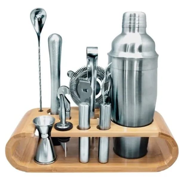 Allt-i-ett cocktailset: inkluderar alla nödvändiga verktyg för att blanda professionella cocktails hemma. Elegant bambubas: uppsättningen presenteras på en naturlig bambubas, perfekt för att organisera verktygen och tillföra stil till ditt kök eller bar. Högkvalitativa verktyg: tillverkade i professionellt rostfritt stål, korrosionsbeständiga och lätta att rengöra. Perfekt för både nybörjare och experter: utmärkt för blivande bartenders och avancerade entusiaster som vill förbättra sin teknik. Perfekt gåva: en idealisk present till cocktailälskare vid födelsedagar, bröllop eller speciella firanden.