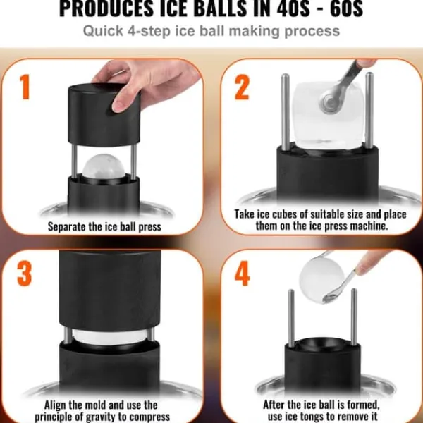 Iskulepressen använder tyngdkraften och den naturliga värmeledningsförmågan hos metall för att komprimera isbitar och forma dem till iskullar av önskad storlek. En enda iskula kan tillverkas på 40-60 sekunder. Om du vill använda iskubspressen flera gånger, bör du blötlägga den i varmt vatten innan.