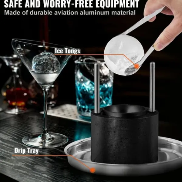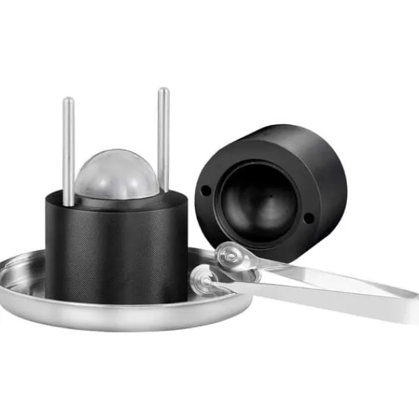 Iskulepressen är tillverkad av hållbart aluminium av flygplansstandard. För din komfort är ytan på metallpressen belagd med ett halkfritt material. Designen med inre spår säkerställer en fast och kompakt passform när den övre formen sänks ner, vilket resulterar i perfekt runda och intakta iskullar.