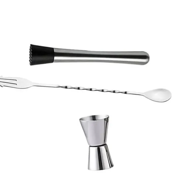 Artikeltyp: Material för stångverktygssats: Rostfritt stål, plast Bruttovikt: 135 g/4,8 oz Muddler: 20,5 cm/8,1 tum blandningssked: 26 cm/10,2 tum jigger: Stor ände: 3,9 cm/1,5 tum, liten ände: 3,2 cm/1,3 tum, höjd: 6,7 cm/2,6 tum Produktfärg: Stålpaketet inkluderar: