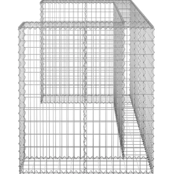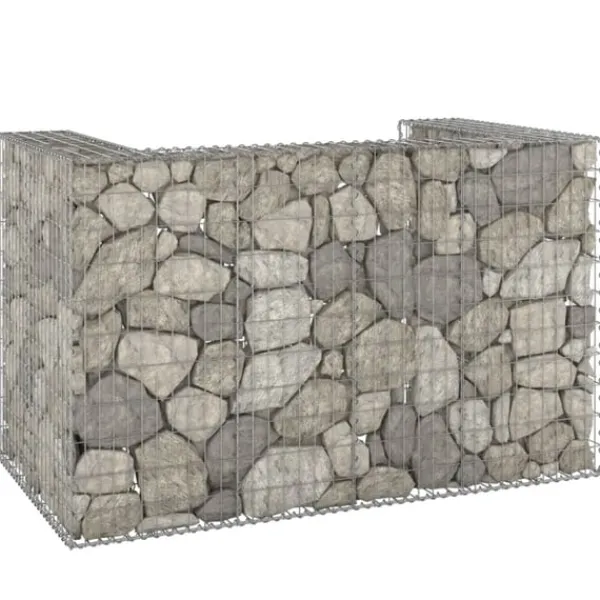 Den robusta gabionen är utformad för att fyllas med stenar eller grus. Stenkorgen är tillverkad av rost- och väderbeständigt galvaniserat stål och är mycket stabil och hållbar. Nätgallret är svetsat med tvärgående och längsgående ledningar vid varje korsning för extra stabilitet. Denna gabionvägg kan rymma 2 soptunnor.