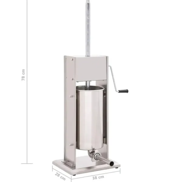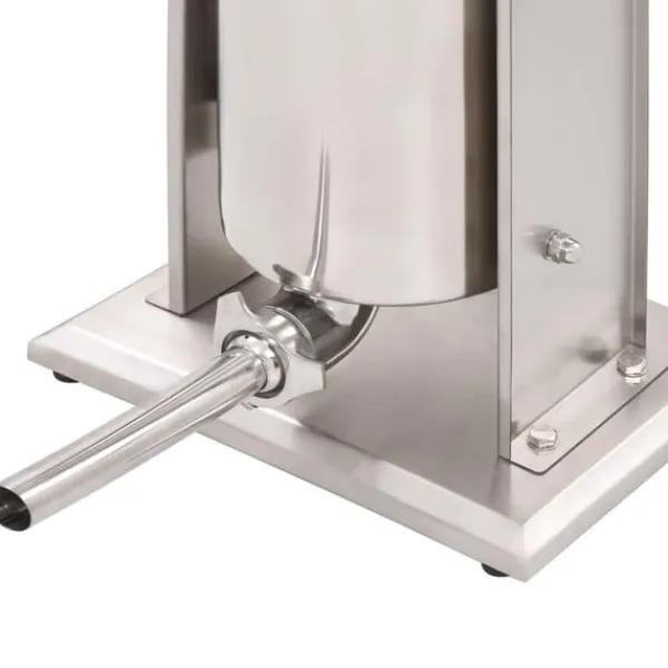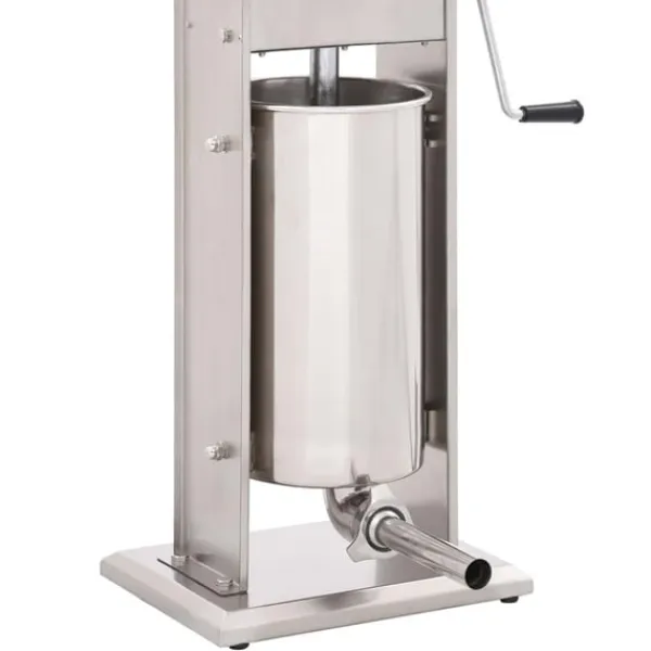 Korvfyllaren i rostfritt stål är utrustad med en 15-liters tratt som går att luta och är avtagbar för att enkelt fylla ditt korvkött, den är också enkel att rengöra. Kolven aktiveras med en vev, som pressar korvmassan genom påfyllningsröret. Dessutom ingår 3 fyllningsrör i olika storlekar för att möta dina olika behov.