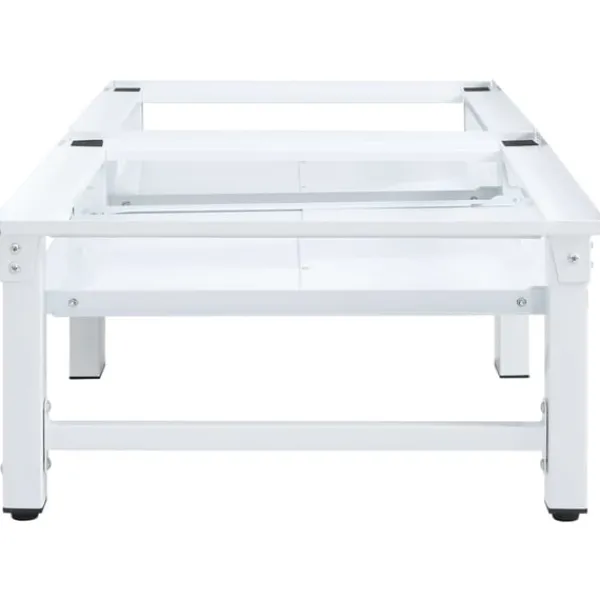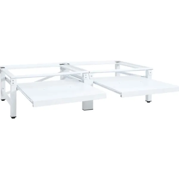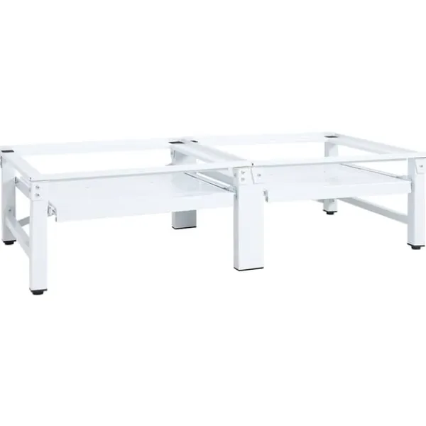 Sockeln är tillverkad i starkt stål, som gör den väldigt robust, stadig och vardera klarar av en tvättmaskin på upp till 100 kg. Tack vare de halkfria plattorna kommer din tvättmaskin att stå säkert och stabilt. Fötterna är justerbara i höjd och gör det möjligt att anpassa den efter ojämna golv. Produkten är dessutom utrustad med två praktiska utdragbara hyllor för extra lagringsutrymme.