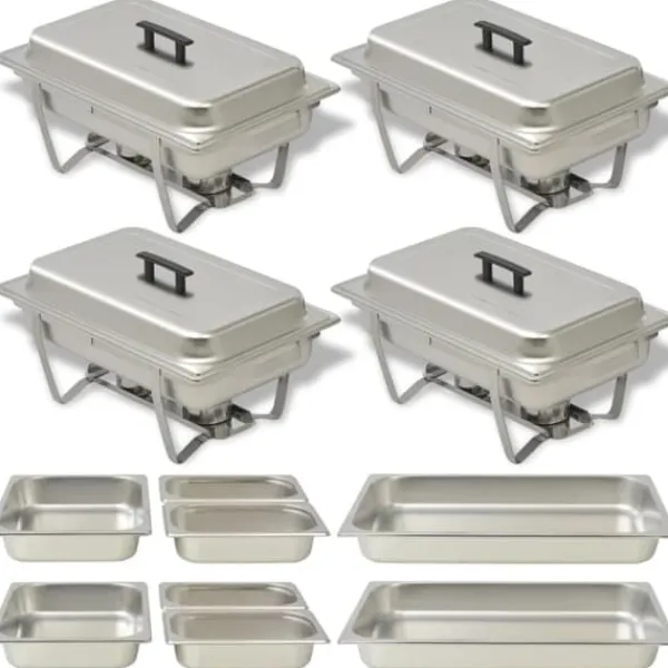 Detta uppsättning med 4 varmhållningskärl är väldigt praktiskt och perfekt för att hålla mat varm eller het under längre tid. Det är perfekt för att använda inom catering, restauranger, hotell, fester eller familjesammankomster i hemmet.