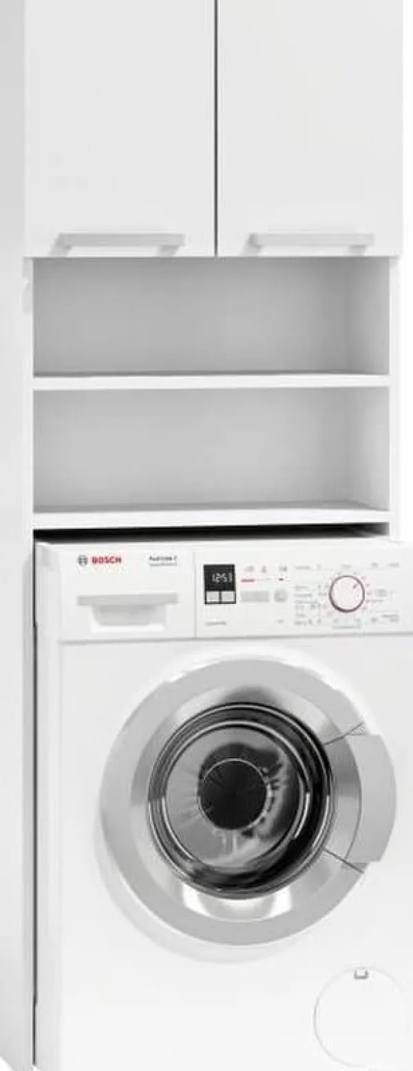 Detta praktiska förvaringsskåp är speciellt utformat för att organisera ditt badrum eller tvättstugan mer effektivt. Perfekt för att förvara städutrustning, handdukar eller andra nödvändigheter, gör detta skåp optimal användning av utrymmet ovanför din tvättmaskin eller torktumlare.