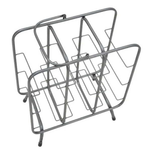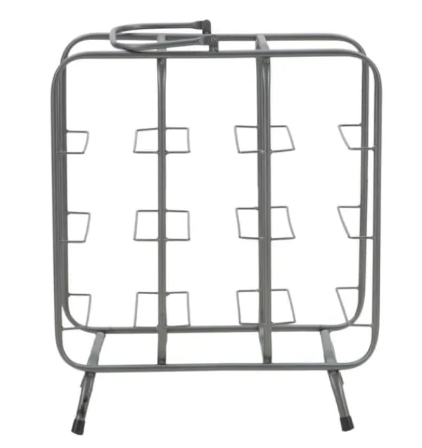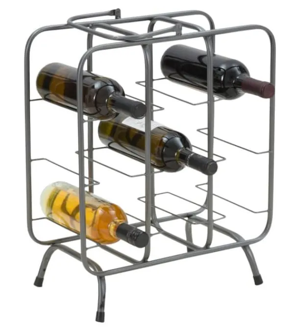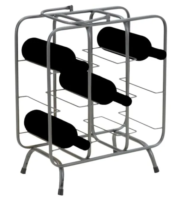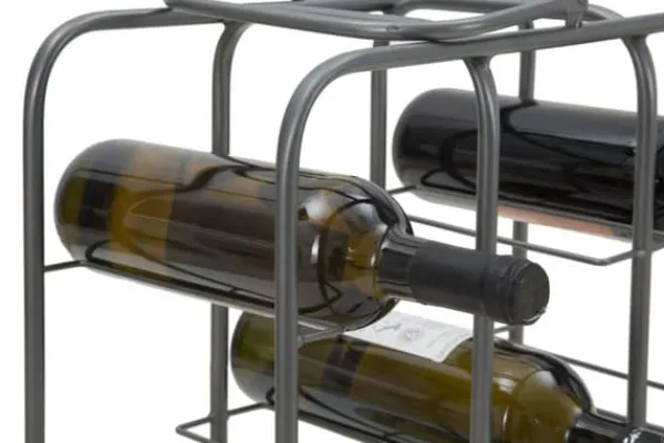 9-håls flaskställ i mörkgrå metall med minimala och moderna linjer komplett med praktiskt handtag. Oumbärlig för aperitifer med vänner