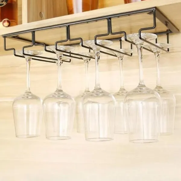 Skapa ordning och elegans i köket eller hemmabaren med denna vinglashängare med 4 rader. Den är tillverkad i slitstarkt järn och behandlad med högtemperaturlack som motverkar rost och gör ytan både vacker och tålig. Kan enkelt monteras under ett skåp eller hylla och sparar därmed värdefull yta.