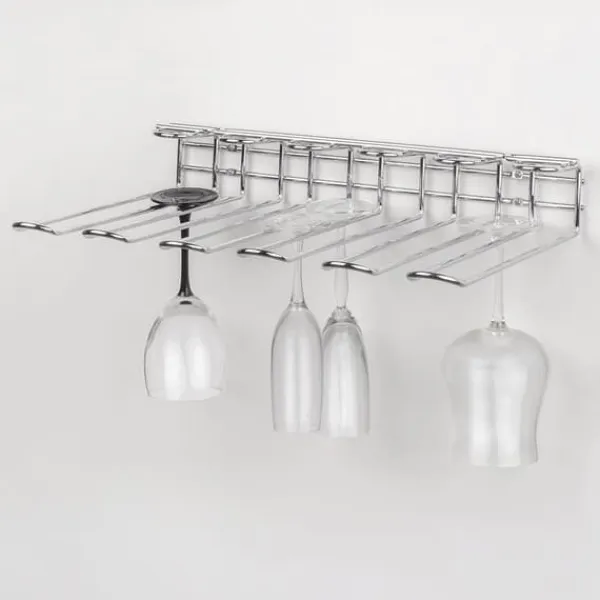Praktisk glashållare som låter dig organisera dina glas och utnyttja utrymmet i dina skåp på bästa sätt. Med denna glashållare kan du ordna ditt köksredskap och alltid ha dina glas inom räckhåll.Den har 5 rader som är 320 mm långa och kan installeras inuti enheterna, under hyllorna eller bänkarna i ditt hem, bar, kök eller restaurang.Dess trådramdesign i kromat stål kan anpassa sig till alla köksstilar och fungerar med alla typer av glas, för vin, champagne, cocktails, brandy, etc. Det är otroligt enkelt att installera i enheten tack vare de skruvar som medföljer. Funktioner:- Förvaring för glas som låter dig organisera dem för att utnyttja utrymmet i dina skåp på bästa sätt.- Det är lätt att installera inuti enheter, på hyllor eller under bänkar.- 5 rader för förvaring med 320 mm längd vardera.- Skruvar för montering ingår.- Tillverkad av kromat stål.Specifikationer:- Mått: 35 x 11,5 x 47- Vikt: 1,75 Kg- Material: Stål- Innehåll: 1 glashållare, skruvar för montering