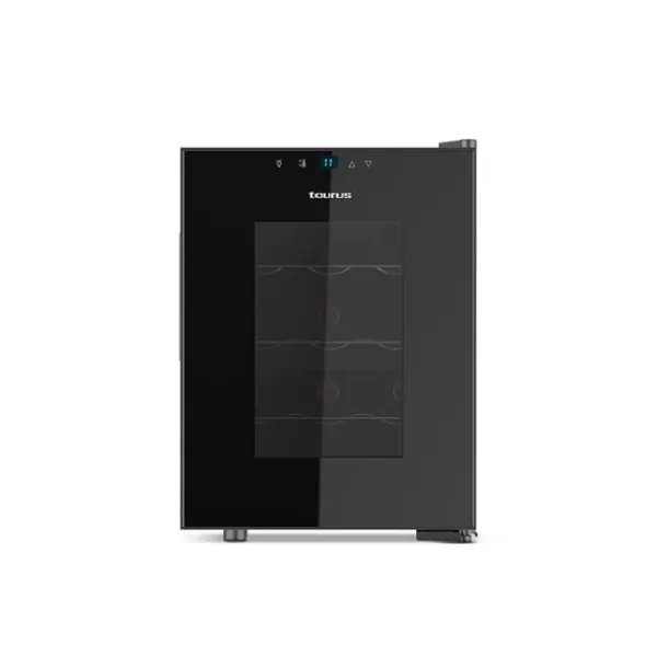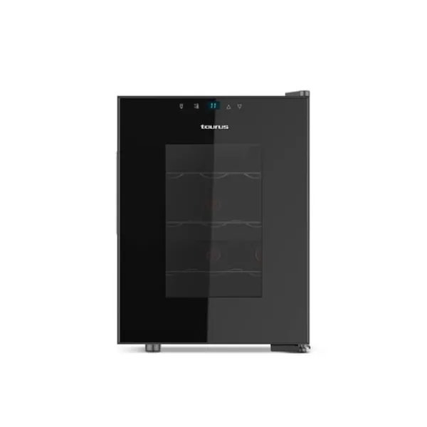 Med antivibrationssystem och dubbel glasdörr helt i svart som förhindrar att vinet blir trött och solens strålar eller utomhustemperaturen kommer in.