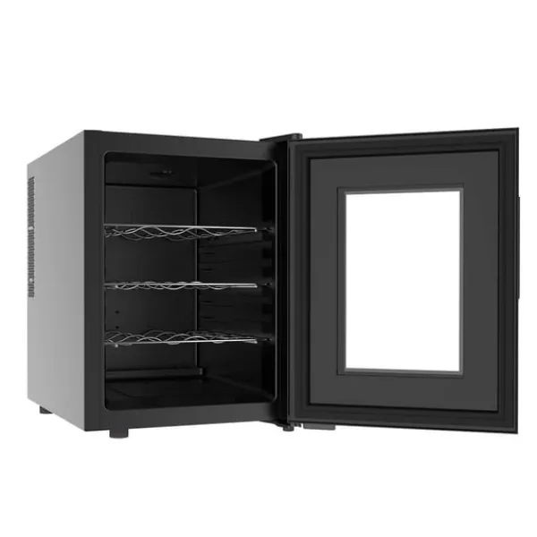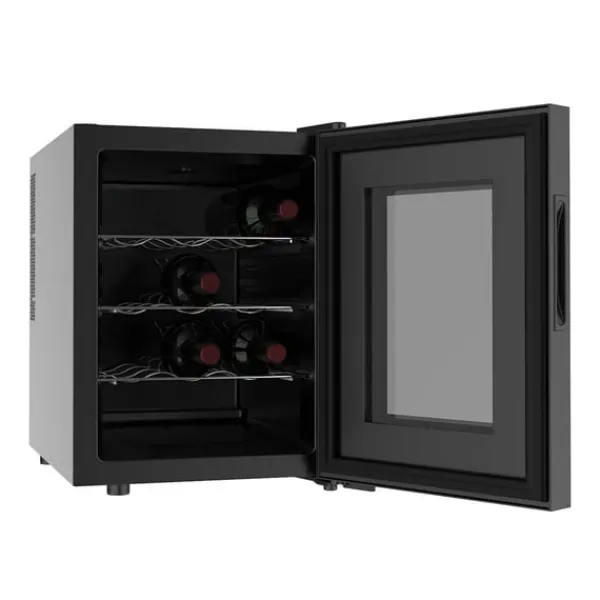 Med justerbara fötter för att justera stabiliteten på vinkylaren vid ojämna ytor. Med ett tyst termoelektriskt system som du inte ens märker av att det arbetar, avger det en maximal ljudnivå på 26 dB.