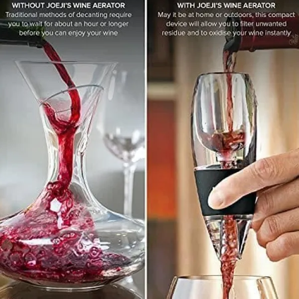 Upptäck vår eleganta vinluftare i BPA-fri akryl. Den möjliggör snabb luftning av vin, eliminerar bittra kristaller och ger en optimal smakupplevelse på bara några sekunder. Kompakt och lätt att transportera, den är perfekt för picknickar och fester. Ett modernt tillbehör för vinälskare.
