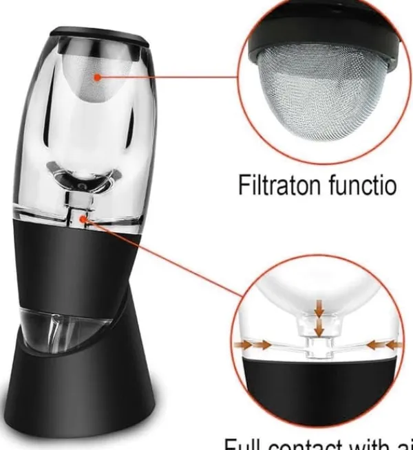Denna eleganta vinluftare förädlar ditt vin genom att syresätta det och snabbt låta unga röda viner ”andas”. Genom att imitera vinets naturliga åldringsprocess förbättras smakprofilen direkt – perfekt för att lyfta vardagsviner till restaurangkvalitet