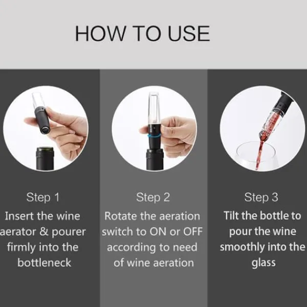 Den här enheten förenar kapaciteten hos en vinhällare och luftare och erbjuder en sömlös och effektiv lösning för vinentusiaster