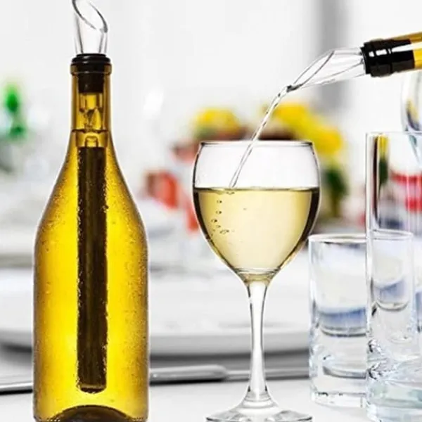 3. ENKEL att använda – efter rengöring, ställ torr kylpinnen i frysen i minst 2 timmar, öppna sedan ditt vin och låt det lufta i 15 minuter, häll vin och sätt sedan in kylpinnen i flaskan, det kommer att behålla din vin perfekt kylt i en timme.