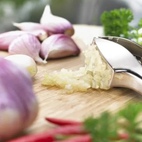 Denna professionella vitlökspress i zinklegering är robust och hållbar. Med en ergonomisk design gör den enkel att krossa vitlök samtidigt som den tål diskmaskin för enkel rengöring. Mått: 15,8cm x 4,3cm, nettovikt 230g. Ett viktigt verktyg för effektiv matlagning.