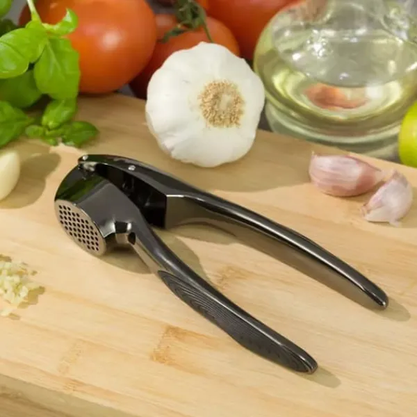 Kinghoff vitlökspressen är gjord av högkvalitativt grafitfärgat rostfritt stål. Bekväma, halkfria silikonhandtag. Estetiskt och gediget utförande.
