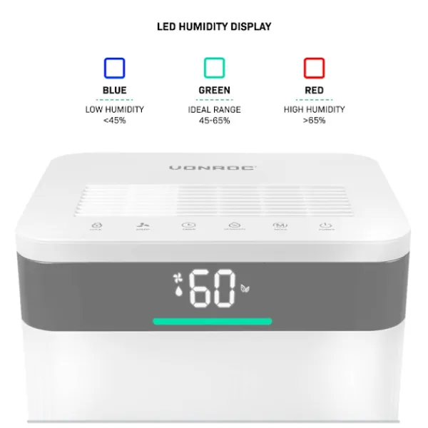 Med denna VONROC-avfuktare håller du enkelt koll året runt. På sommaren tar den bort fuktig, tung luft, och under vintern motverkar den kondens. Resultatet: ett jämnt, friskt och behagligt inomhusklimat.