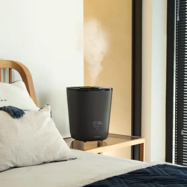 Tack vare det 360° roterbara munstycket kan du rikta dimutloppet i valfri riktning. På så sätt kan du placera luftfuktaren var du vill utan att dimman kommer i vägen. Den stora vattentanken på 4,5 liter räcker länge. Om luftfuktaren mot förmodan skulle ta slut, oroa dig inte. En låg vattennivå visas tydligt på displayen och det inbyggda skyddssystemet stänger automatiskt av maskinen.