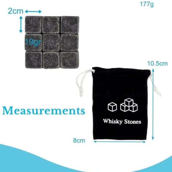 Den perfekta whiskynjutningen består framför allt av två viktiga punkter: Den är kyld och inte urvattnad. För att skapa det perfekta alternativet till smältande isbitar har dessa kuber i rostfritt stål designats. De placeras i frysen under en tid och kan sedan placeras i whiskyglaset.
