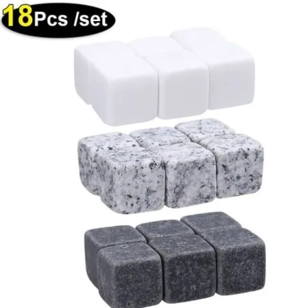 HK14041-Återanvändbara whiskystenar. Bärbar vinkylare. issten. Whisky naturstenar. Stångverktyg. bröllopspresentset 6/18 delar.BAC A GLACON – SAC A GLACON.Paketinnehåll:vit-1set