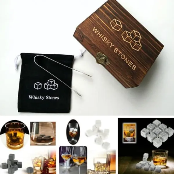 Till skillnad från vanliga isbitar, så smälter inte whiskey stenar. De håller alltså din whiskey kall utan att spä ut den och därför kan du enkelt njuta en kall whiskey från början till slut med dessa whiskey stenar i hög kvalitet. Whiskey stenarna kommer i en lyxig och elegant presentask i vackert trä.