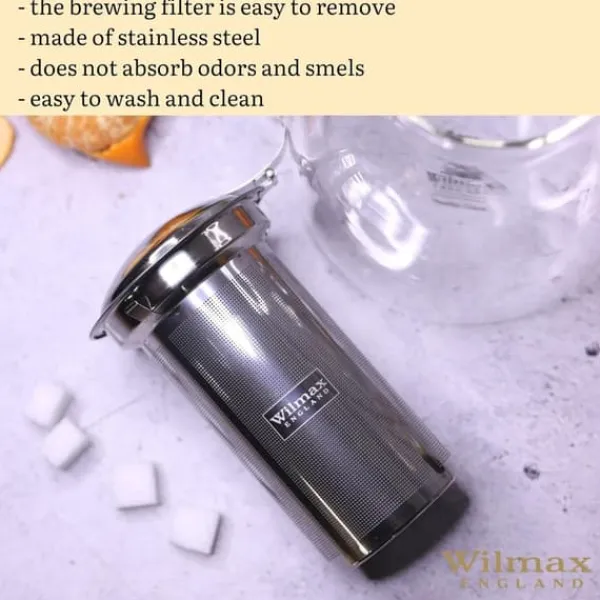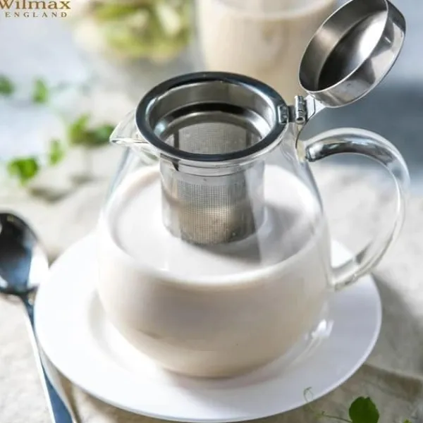 Brygg löste direkt på spisen med Wilmax tekanna 600 ml i värmetåligt borosilikatglas. Den transparenta kannan låter dig följa bryggningen, medan rostfritt stålfilter håller kvar tebladen för en klar, aromatisk kopp. Passar gas- och elspis och är diskmaskinssäker (ta av locket/insatsen vid behov). Glaset är lukt- och smakneutralt, motstår repor och är lätt att hålla rent. Den droppsnåla pipen och det bekväma handtaget gör serveringen smidig. En elegant tebryggare som fungerar lika bra till blommande te och örtte som till svart eller grönt te—perfekt för vardag, gäster och som present.