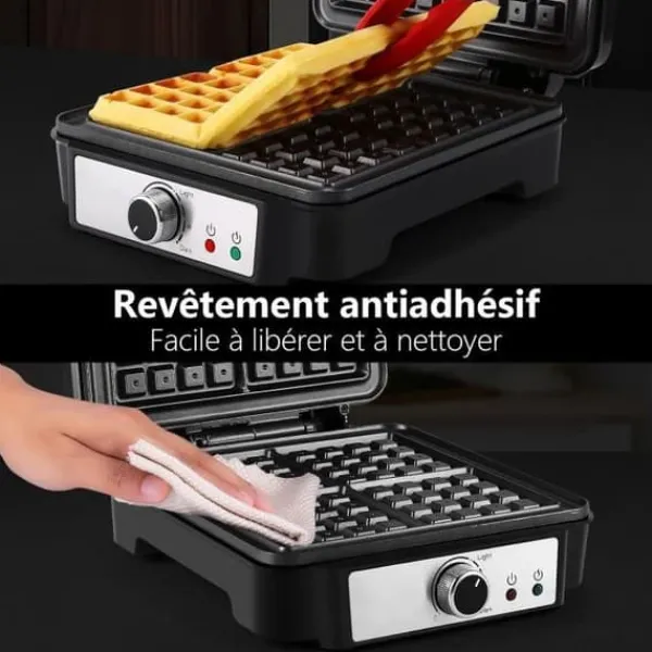 Denna våffeljärn gör att du kan förbereda upp till 4 belgiska våfflor snabbt på några minuter, vilket uppfyller hela familjens behov. Med ett värmeelement på 1200W säkerställer detta våffeljärn en snabb och jämn tillagning, vilket ger tjocka och luftiga våfflor som de man hittar på restauranger. Välj mellan 5 olika rostningsinställningar för att anpassa dina våfflor.