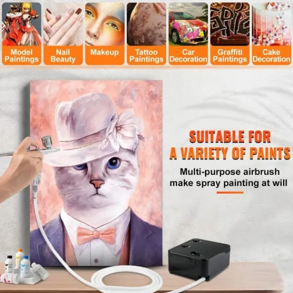 -Används i stor utsträckning: Detta vackra, mångsidiga airbrush-kit är lämpligt för nybörjare, studenter och avancerade artister. Den är idealisk för de flesta airbrush-applikationer och kompatibel med de flesta typer av målning. Med produktens unika och detaljerade användarmanual behöver du inte oroa dig för att använda eller rengöra den. Även nybörjare kan skapa ett verkligt felfritt utseende.
