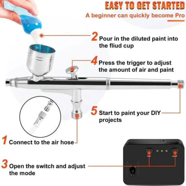Med en bekväm vätskekontrollknapp, justerbara sprutmönster och utbytbara underhållsmunstycken, är denna sprutpistolsats enkel att montera och använda för användare på alla nivåer. Nybörjare och proffs kan börja skapa vackra skapelser direkt.