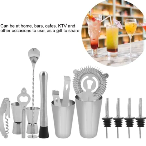 Välkommen till vår butik! Detta 14-delade barset i högkvalitativt rostfritt stål är starkt, hållbart och enkelt att använda och rengöra. Med dessa viktiga verktyg kan du skapa verkligt perfekta drinkar. Setet har en hållbar konstruktion med en spegelblank yta för enkel rengöring. Inkluderade artiklar är: 2 cocktailshakers, 1 isklämma, 2 mätkoppar, 1 sked i rostfritt stål, 4 vinmunnar i rostfritt stål, 1 isblockeringsanordning, 1 flasköppnare, 1 hippocampus och 1 glass. Perfekt för användning hemma, i barer, kaféer, KTV och vid andra tillfällen, det är också en utmärkt present att dela med sig av. Nöjdhet: Våra kunder är vår högsta prioritet. Om du upptäcker några produktproblem efter att du mottagit varorna, såsom skador eller felaktig mängd varor, vänligen kontakta säljaren omedelbart. Vi gör vårt bästa för att ge dig tillfredsställande kundservice.