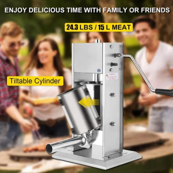 Den rostfria korvpåfyllaren har en kapacitet på 15L och kan göra flera korvar samtidigt. Och cylindern antar en tiltbar design. Häll bara i ingredienserna så är du redo att snabbt börja göra korv.